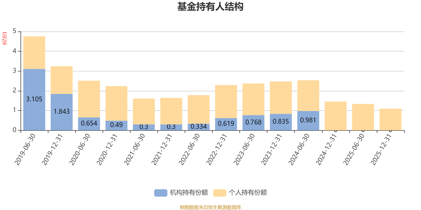 截至2025年12月31日,基金持有人共计2.34万户,合计持有1.1亿份。其中管理人员工持有30.96万份,占比0.28%,机构持有份额占比0.02%,个人投资者占比99.98%。