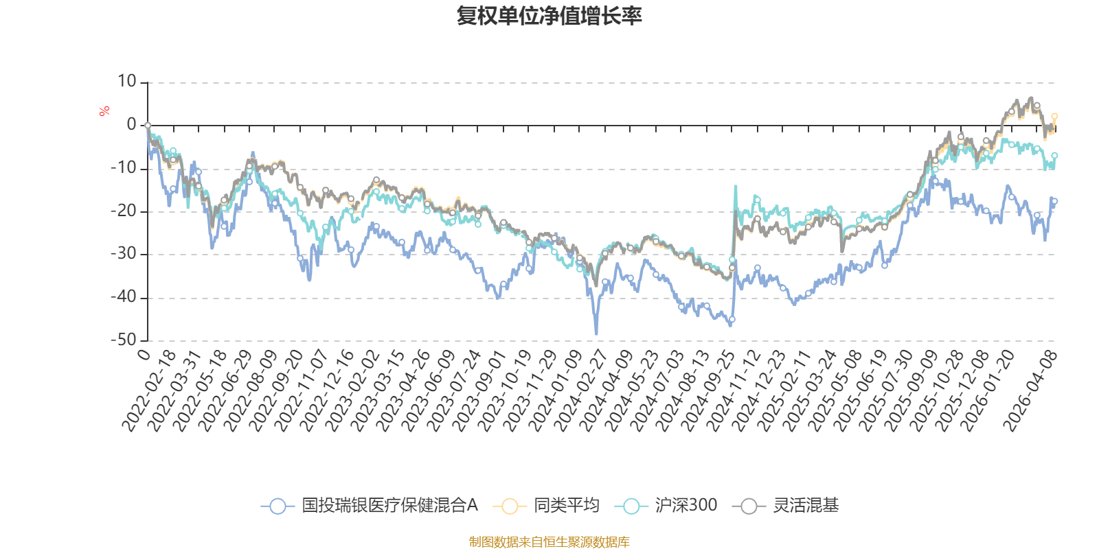 截至4月8日,国投瑞银医疗保健混合A近三个月复权单位净值增长率为-0.50%,位于同类可比基金727/1287;近半年复权单位净值增长率为-5.60%,位于同类可比基金1093/1286;近一年复权单位净值增长率为29.84%,位于同类可比基金715/1286;近三年复权单位净值增长率为10.37%,位于同类可比基金726/1286。