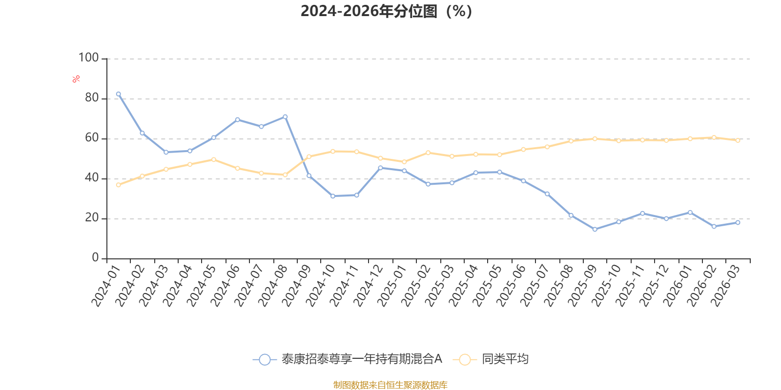 通过所选区间该基金净值增长率分位图,可以观察该基金与同类基金业绩比较情况。图为坐标原点到区间内某时点的净值增长率在同类基金中的分位数。