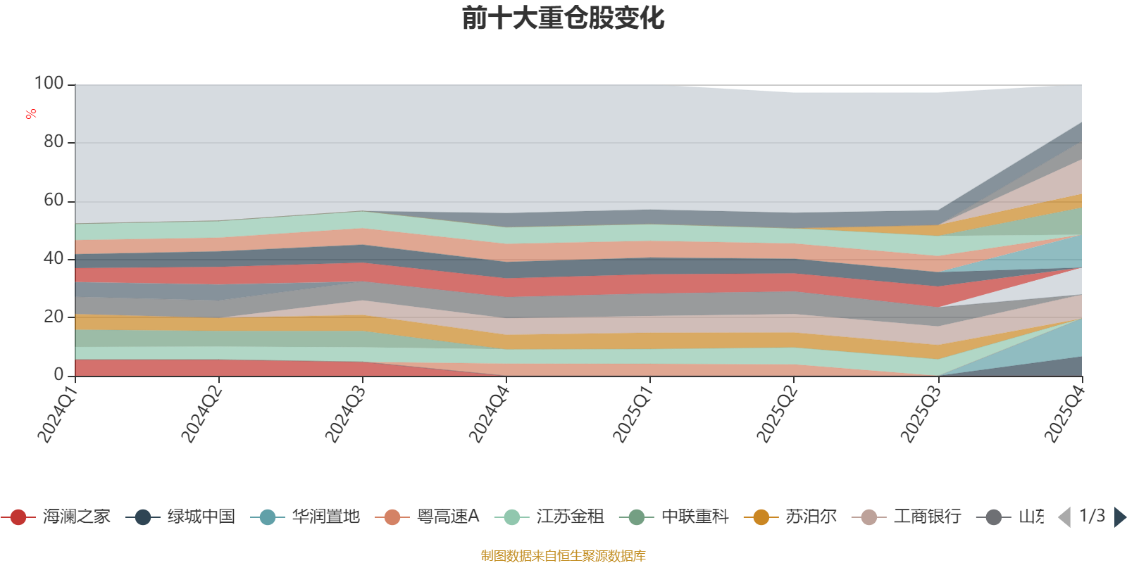 该基金持股集中度较高,且持股标的较为稳定。截至2025年末,基金十大重仓股分别是华润置地、中际旭创、保利置业集团、招商蛇口、贝壳-W、工商银行、绿城中国、建设银行、立讯精密、中国神华。