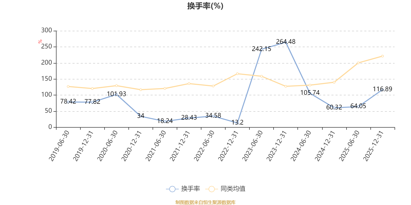 截至2025年12月31日,基金最近一年换手率约183.61%,持续2年低于同类均值。