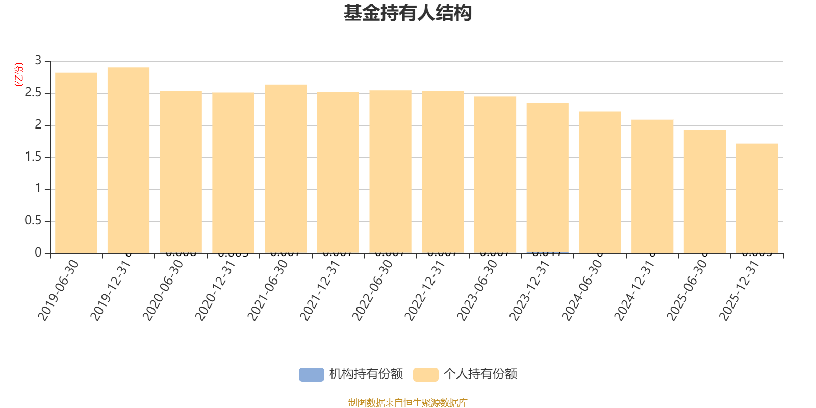 截至2025年12月31日,基金持有人共计5.13万户,合计持有1.71亿份。其中管理人员工持有9.81万份,占比0.06%,机构持有份额占比0.27%,个人投资者占比99.73%。
