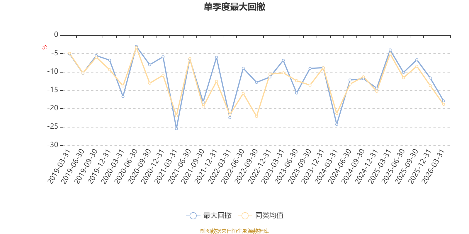 截至4月8日,基金近三年最大回撤为44.5%,同类可比基金排名42/48。单季度最大回撤出现在2021年一季度,为25.48%。