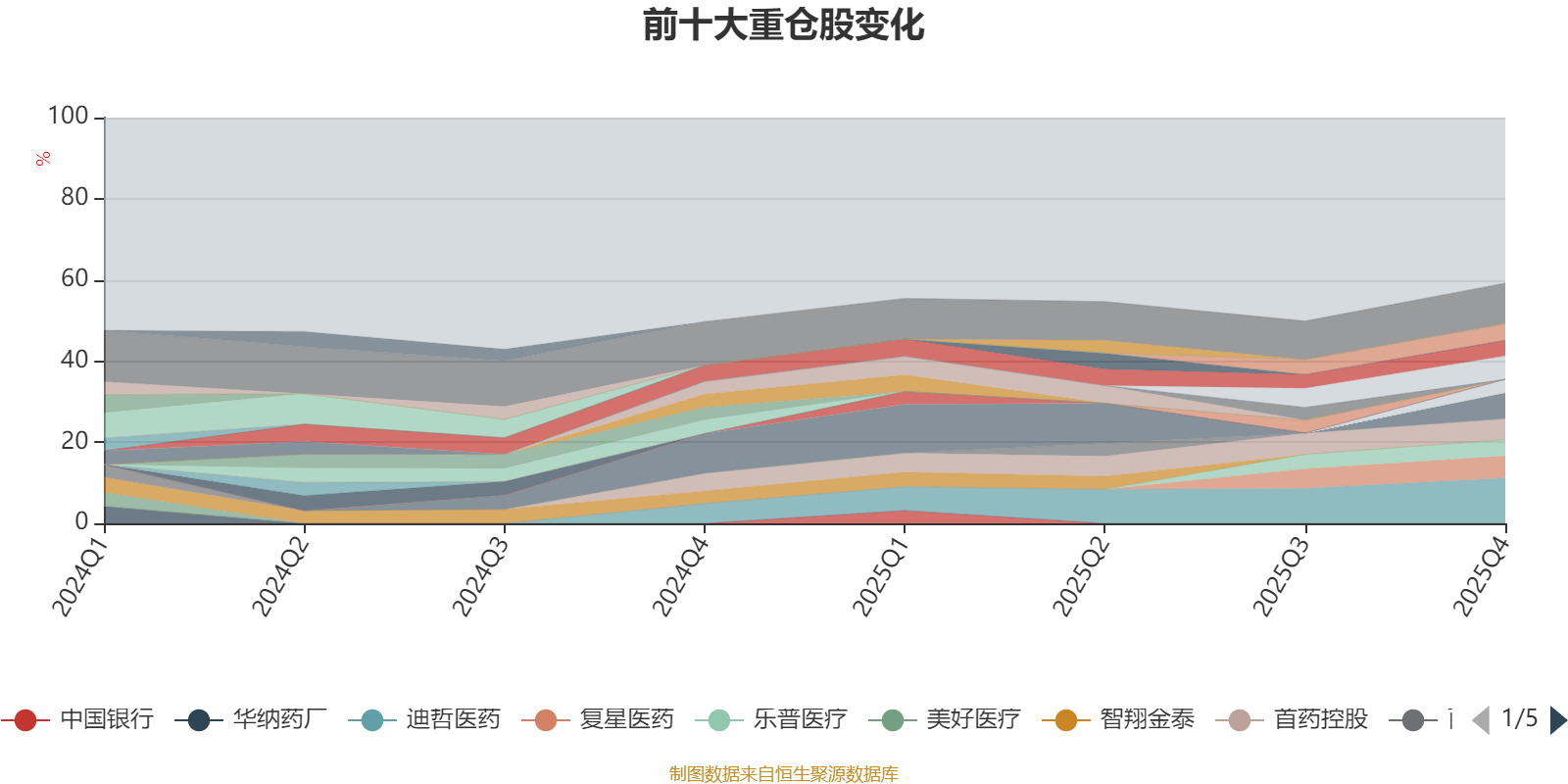 截至2025年末,基金十大重仓股分别是迪哲医药、恒瑞医药、百济神州、我武生物、复星医药、首药控股、奕瑞科技、乐普医疗、甘李药业、山外山。