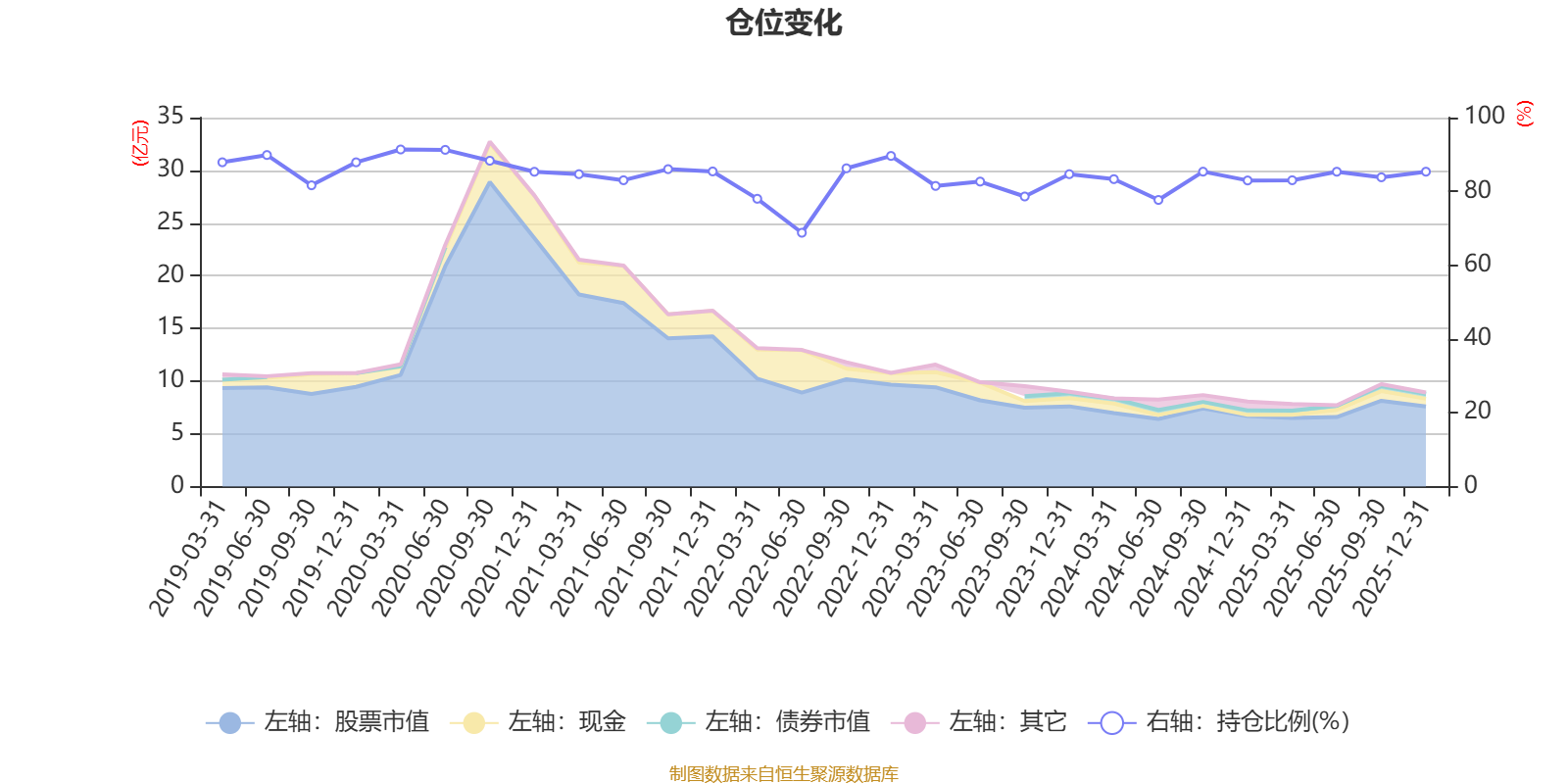 据定期报告数据统计,近三年平均股票仓位为82.85%,同类平均为86.12%。2020年一季度末基金达到91.36%的最高仓位,2022年上半年末最低,为68.79%。