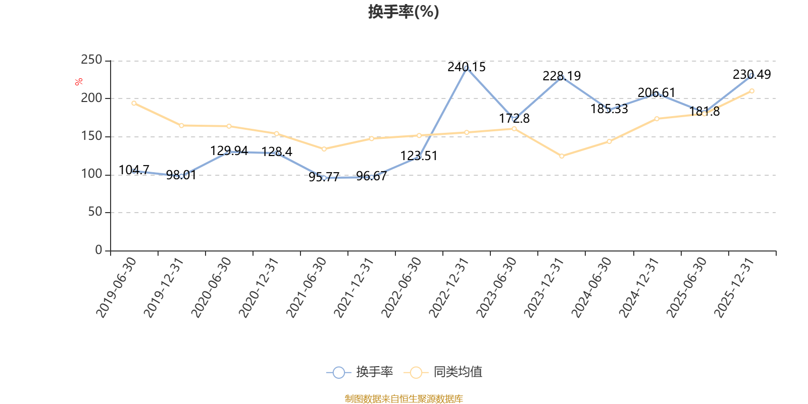 截至2025年12月31日,基金最近一年换手率约410.24%,持续3年高于同类均值。