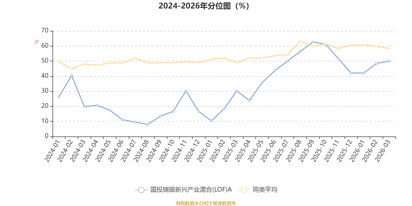 通过所选区间该基金净值增长率分位图,可以观察该基金与同类基金业绩比较情况。图为坐标原点到区间内某时点的净值增长率在同类基金中的分位数。