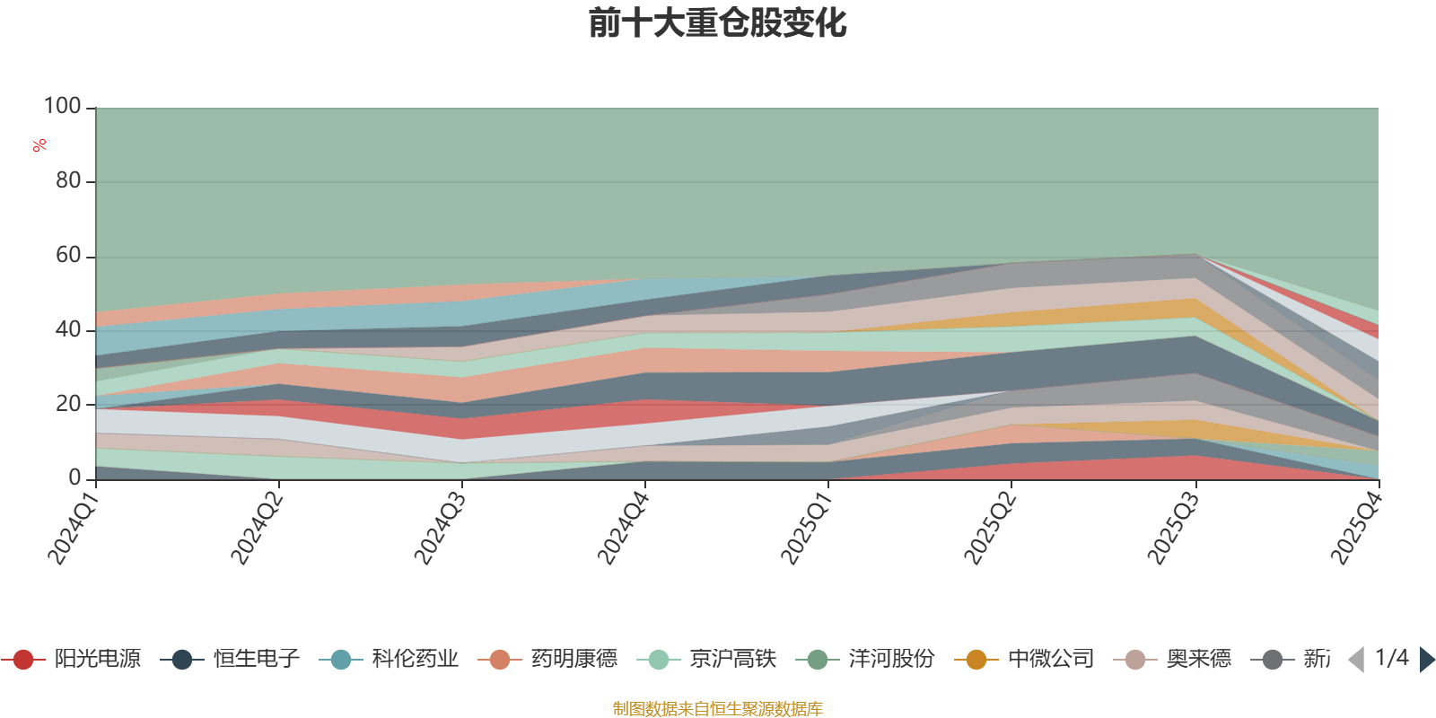 截至2025年末,基金十大重仓股分别是美的集团、ST人福、海康威视、晶方科技、骄成超声、新产业、科伦药业、惠泰医疗、洋河股份、安琪酵母。
