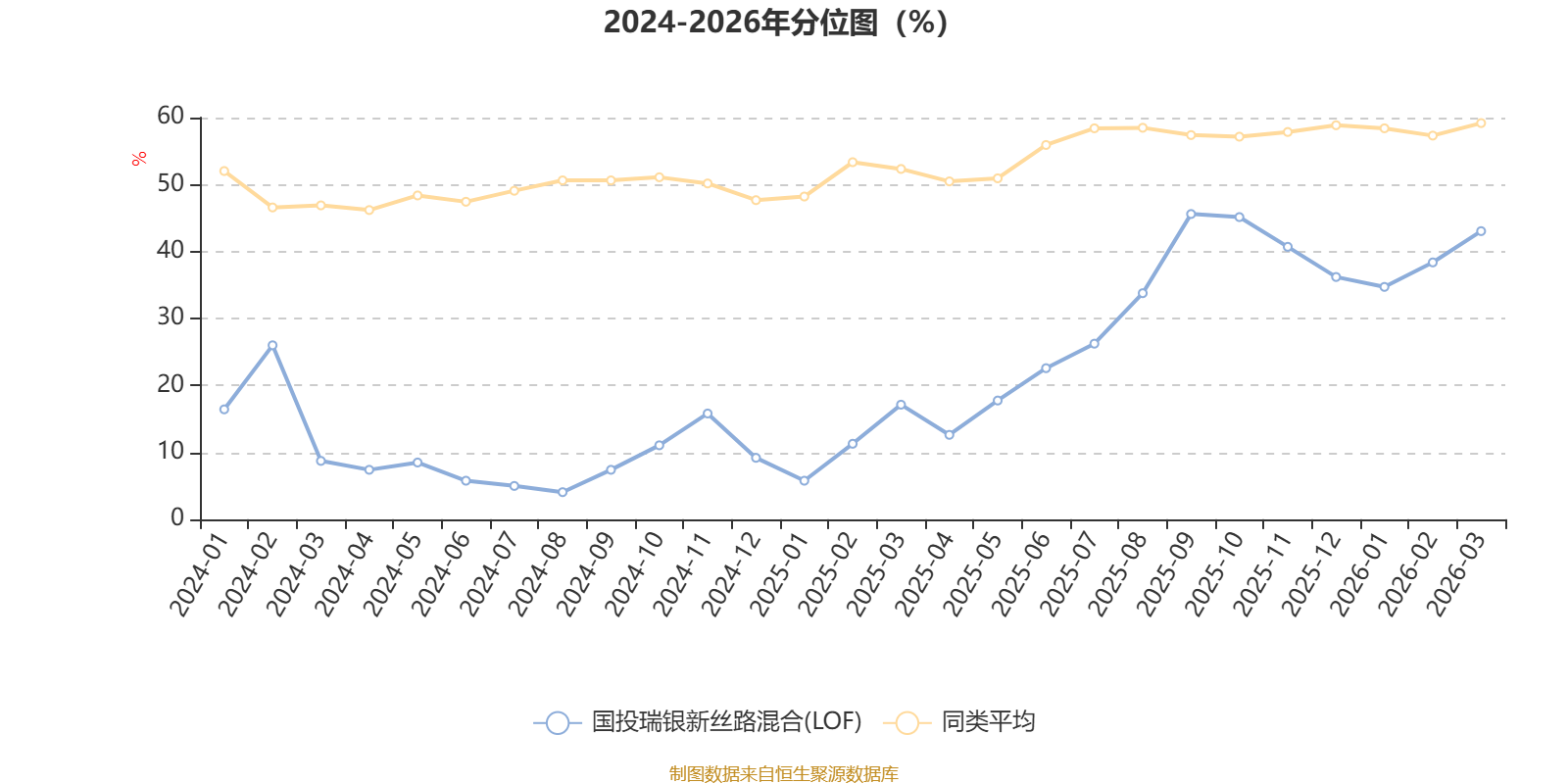 通过所选区间该基金净值增长率分位图,可以观察该基金与同类基金业绩比较情况。图为坐标原点到区间内某时点的净值增长率在同类基金中的分位数。