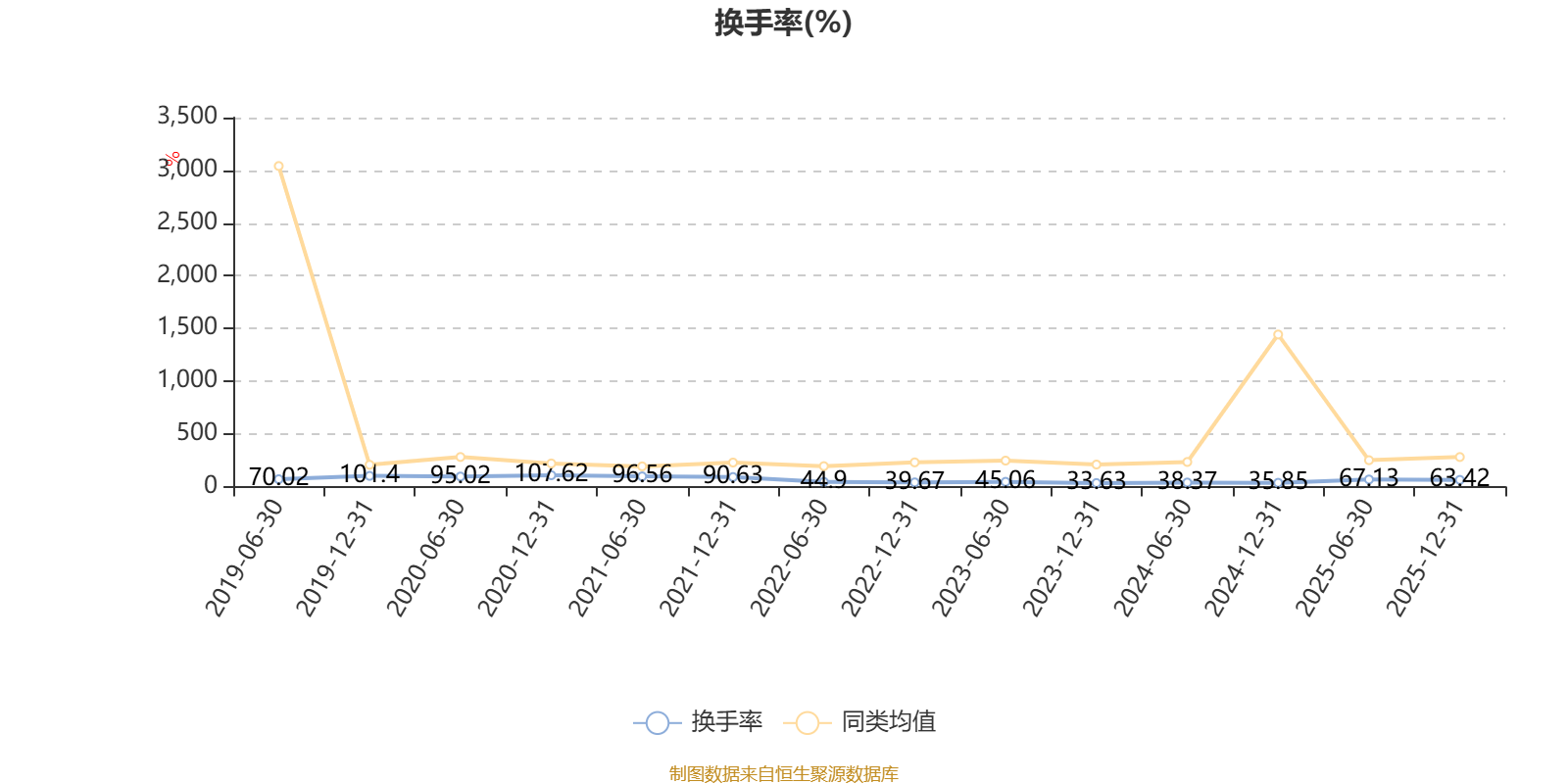 截至2025年12月31日,基金最近一年换手率约129.17%,持续低于同类均值。