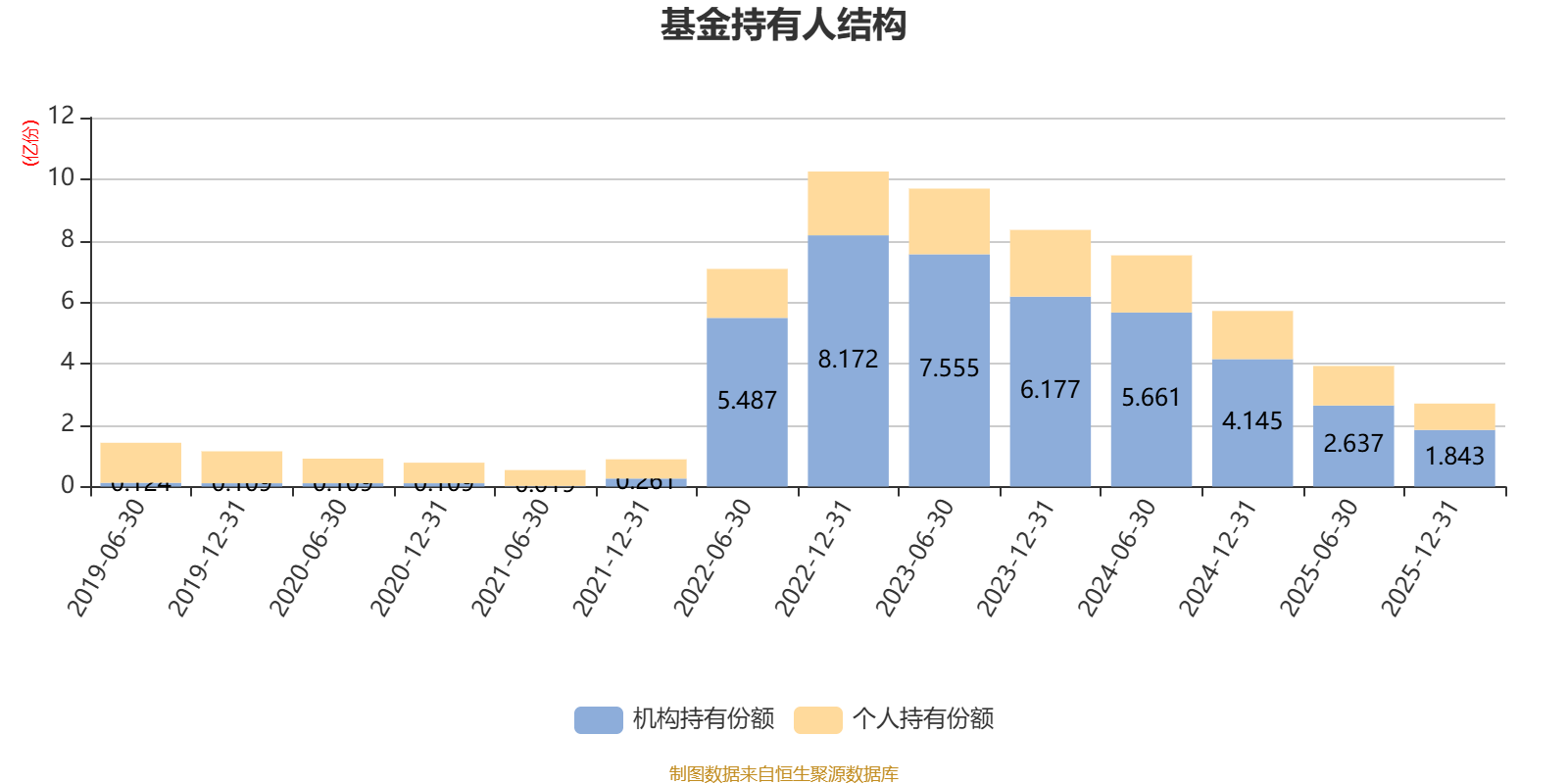 截至2025年12月31日,基金持有人共计12.11万户,合计持有2.7亿份。其中管理人员工持有67.46万份,占比0.25%,机构持有份额占比68.27%,个人投资者占比31.73%。