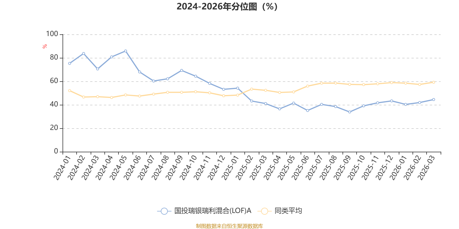 通过所选区间该基金净值增长率分位图,可以观察该基金与同类基金业绩比较情况。图为坐标原点到区间内某时点的净值增长率在同类基金中的分位数。