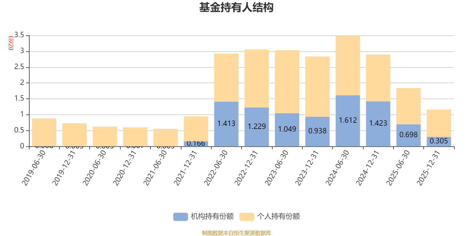 截至2025年12月31日,基金持有人共计11.72万户,合计持有1.16亿份。其中管理人员工持有17.81万份,占比0.15%,机构持有份额占比26.32%,个人投资者占比73.68%。