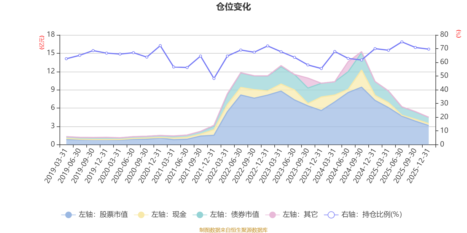 据定期报告数据统计,近三年平均股票仓位为66%,同类平均为72.57%。2025年上半年末基金达到74.95%的最高仓位,2021年末最低,为48.25%。