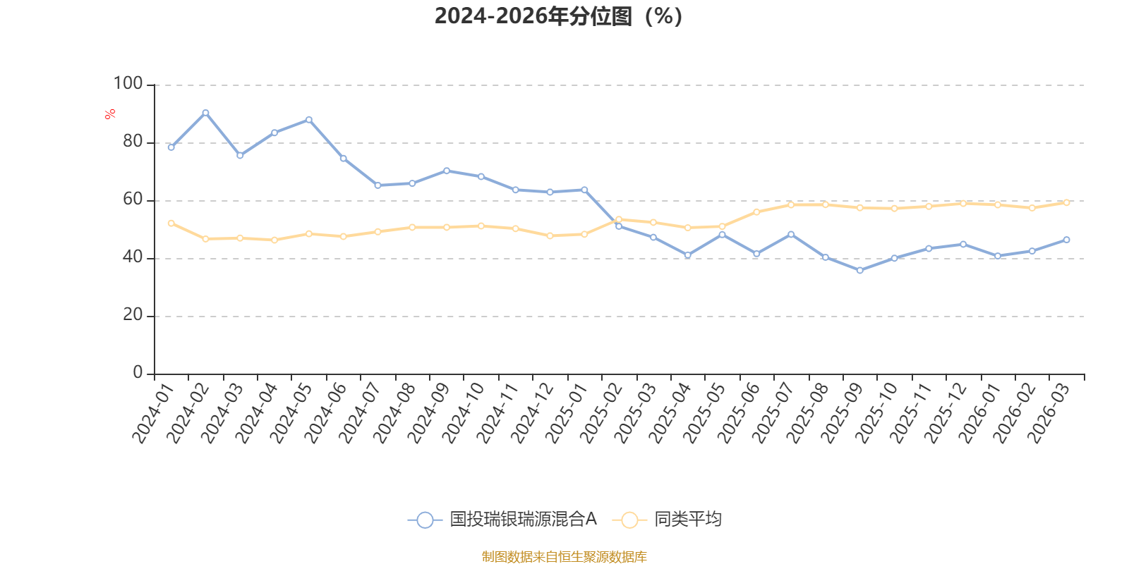 通过所选区间该基金净值增长率分位图,可以观察该基金与同类基金业绩比较情况。图为坐标原点到区间内某时点的净值增长率在同类基金中的分位数。