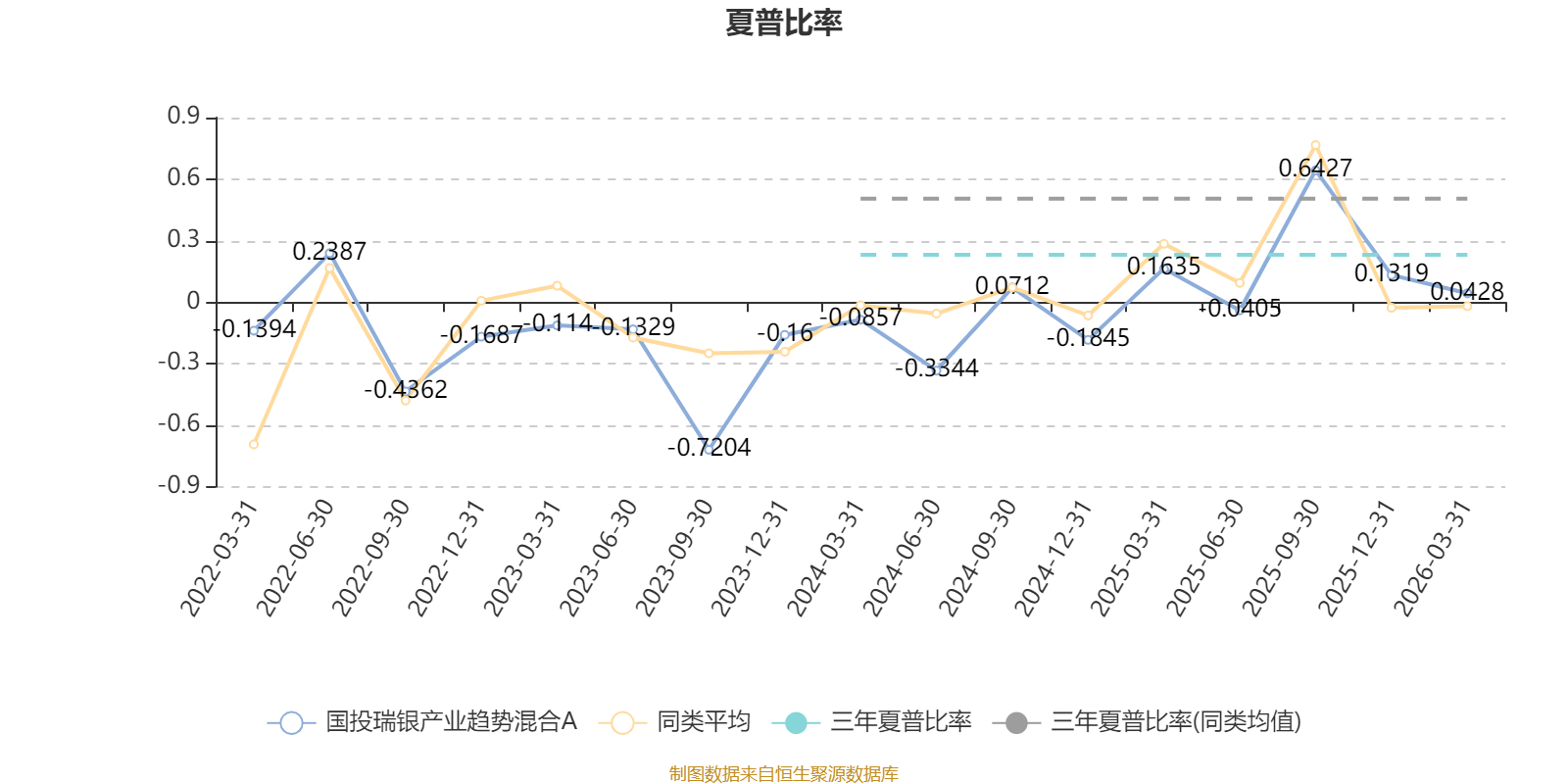 截至3月31日,基金近三年夏普比率为0.2303,位于同类可比基金152/178。