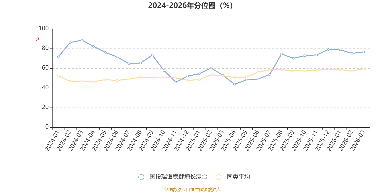 通过所选区间该基金净值增长率分位图,可以观察该基金与同类基金业绩比较情况。图为坐标原点到区间内某时点的净值增长率在同类基金中的分位数。