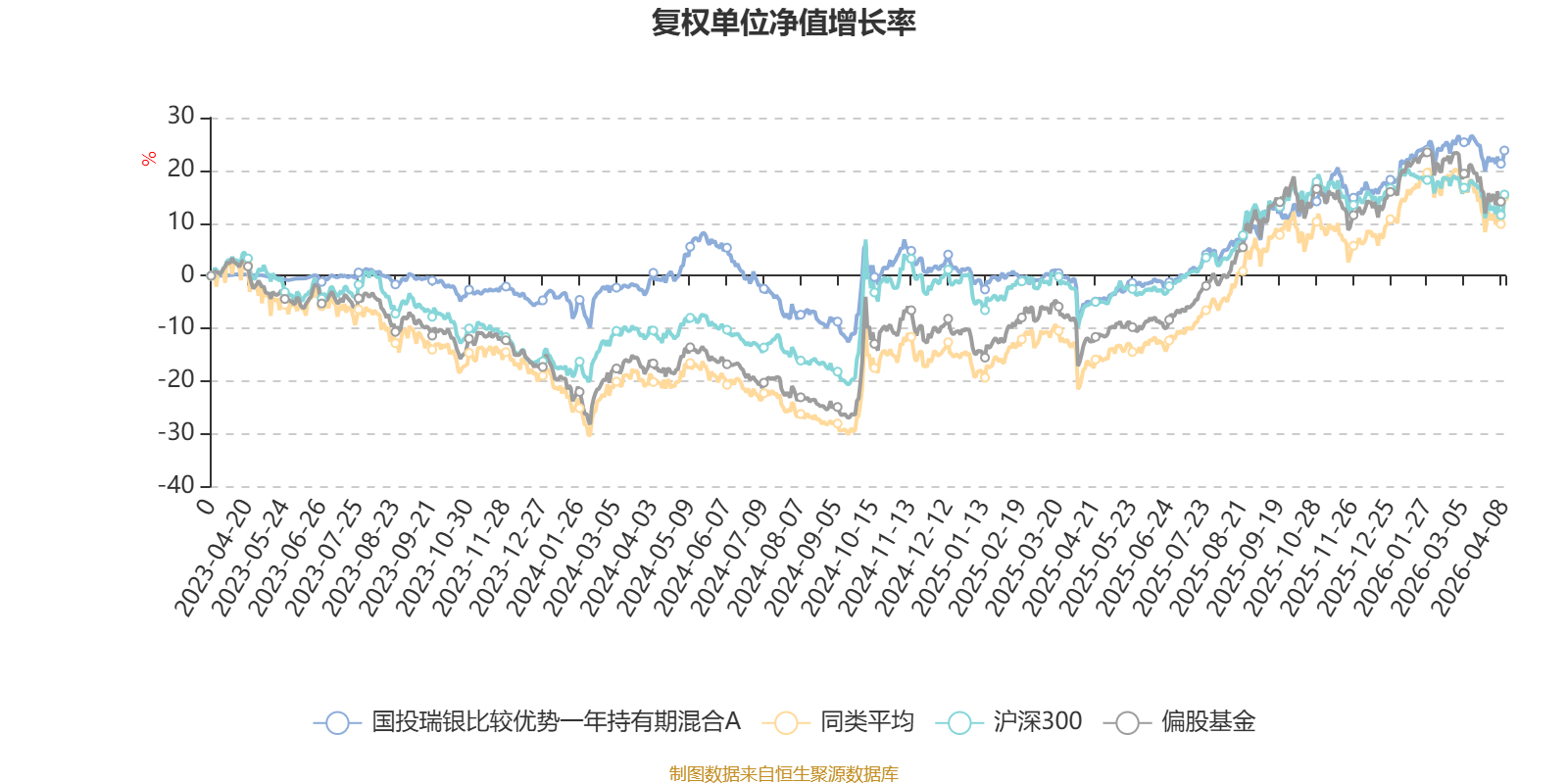 该基金属于偏股混合型基金。截至4月8日,单位净值为1.238元。基金经理是綦缚鹏,目前管理的7只基金近一年均为正收益。其中,截至4月8日,国投瑞银比较优势一年持有期混合A近一年复权单位净值增长率最高,达33.38%;国投瑞银优化增强债券A/B最低,为8.33%。