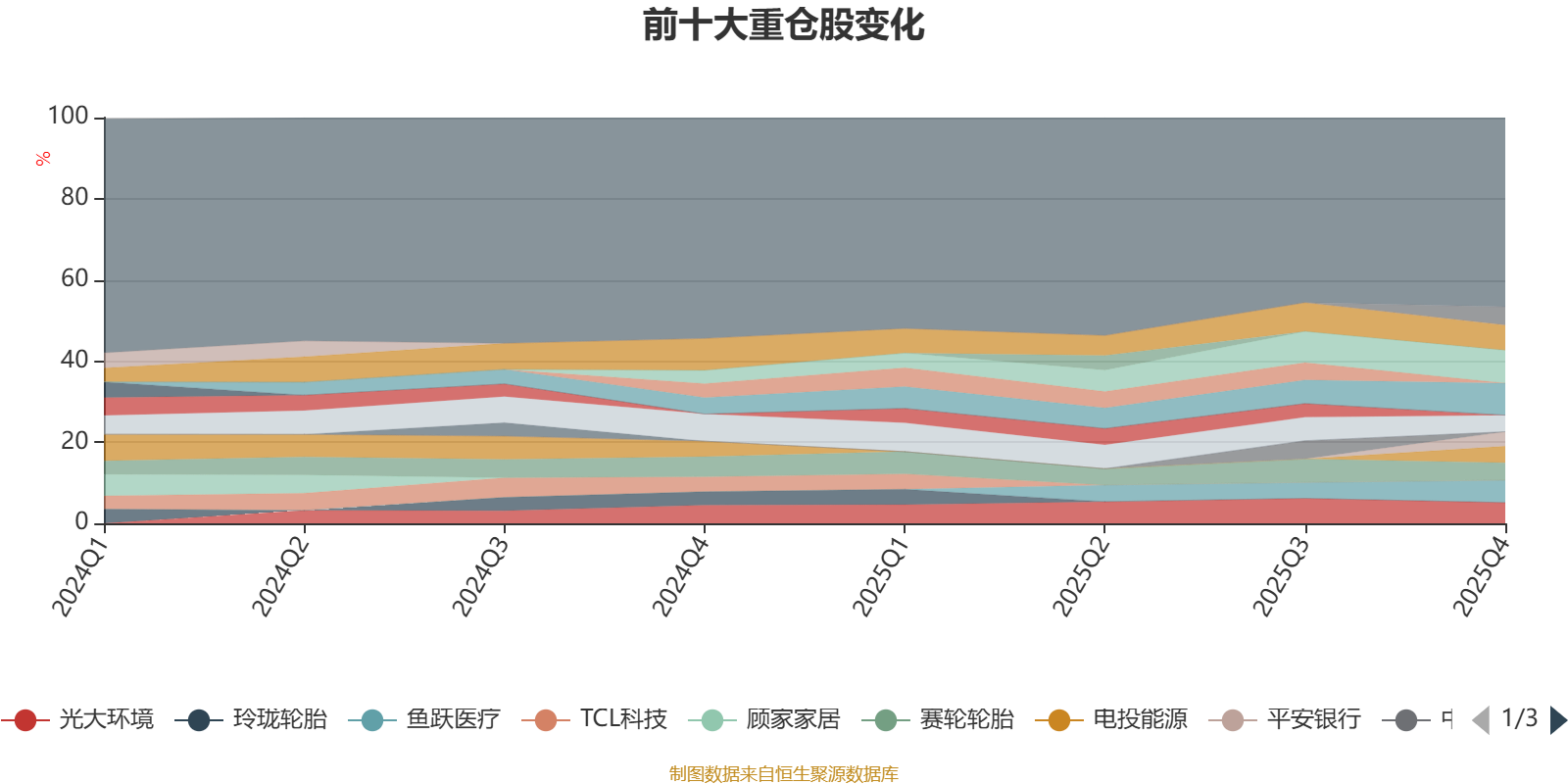 截至2025年末,基金十大重仓股分别是京东方A、太阳纸业、中煤能源、鱼跃医疗、光大环境、新凤鸣、赛轮轮胎、裕同科技、电投能源、平安银行。