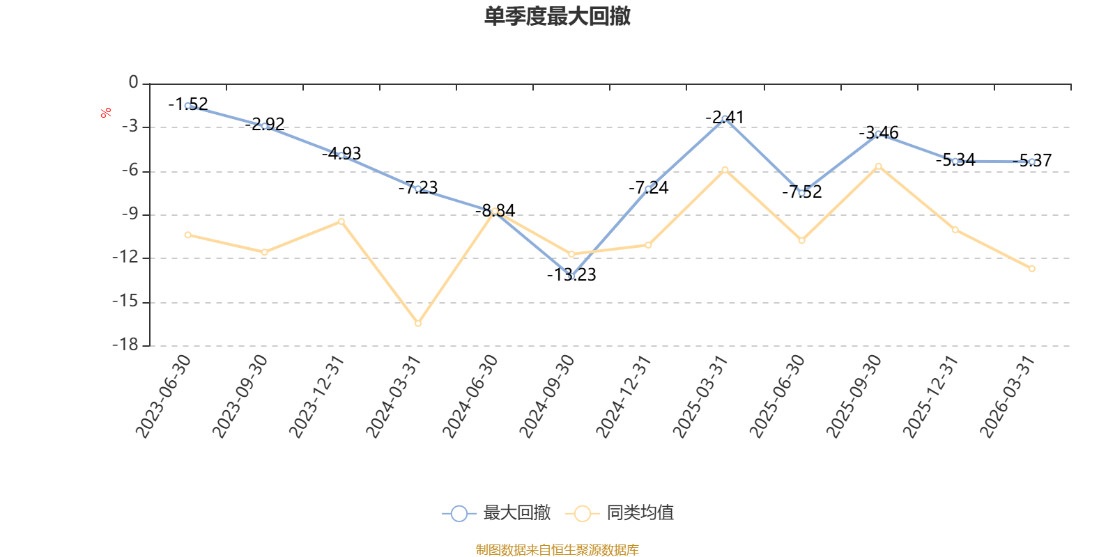 截至4月8日,基金近三年最大回撤为19.1%,同类可比基金排名25/550。单季度最大回撤出现在2024年三季度,为13.23%。