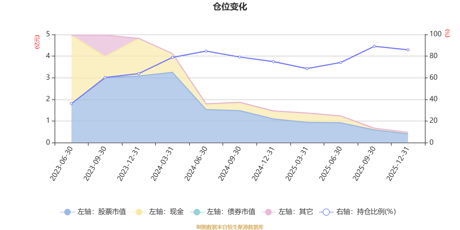 据定期报告数据统计,成立以来平均股票仓位为72.32%,同类平均为85.83%。2025年三季度末基金达到89.11%的最高仓位,2023年上半年末最低,为36.13%。