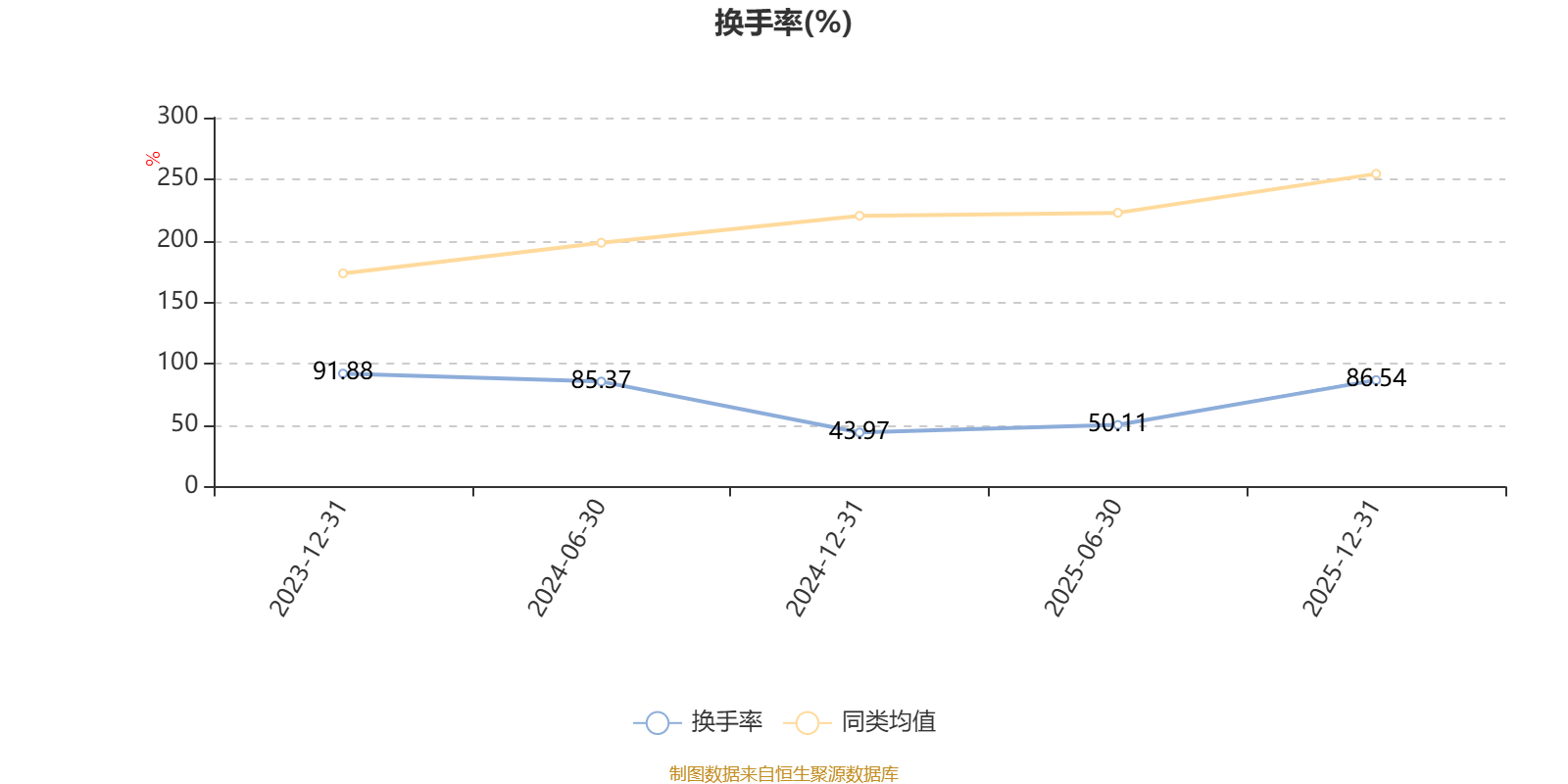 截至2025年12月31日,基金最近一年换手率约132.29%,持续低于同类均值。