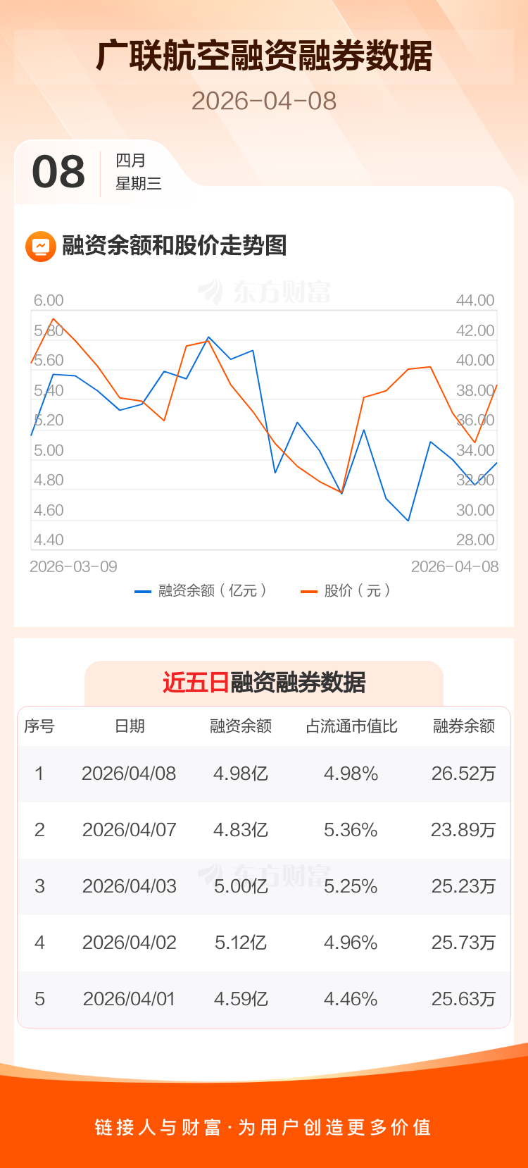 交易所最新数据显示,广联航空于2026年4月8日获融资买入1.13亿元,融资偿还9855.14万元,当日融资净买入1489.22万元。目前,该股融资余额4.98亿,占流通市值比例为4.98%。