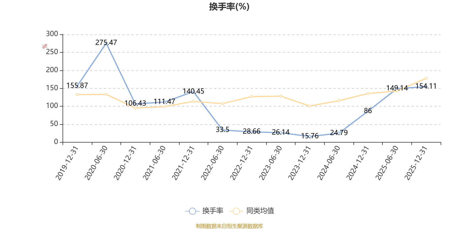 截至2025年12月31日,基金最近一年换手率约294.99%。