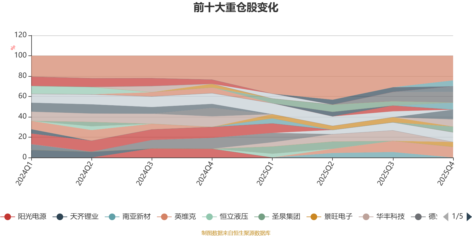 该基金持股集中度较高。截至2025年末,基金十大重仓股分别是麦格米特、英维克、寒武纪、天赐材料、中矿资源、新易盛、天际股份、多氟多、中际旭创、景旺电子。