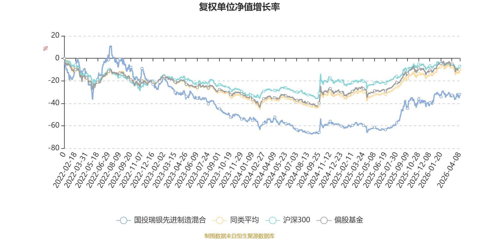 截至4月8日,国投瑞银先进制造混合近三个月复权单位净值增长率为-0.56%,位于同类可比基金87/185;近半年复权单位净值增长率为7.04%,位于同类可比基金50/185;近一年复权单位净值增长率为99.37%,位于同类可比基金8/185;近三年复权单位净值增长率为0.59%,位于同类可比基金134/177。