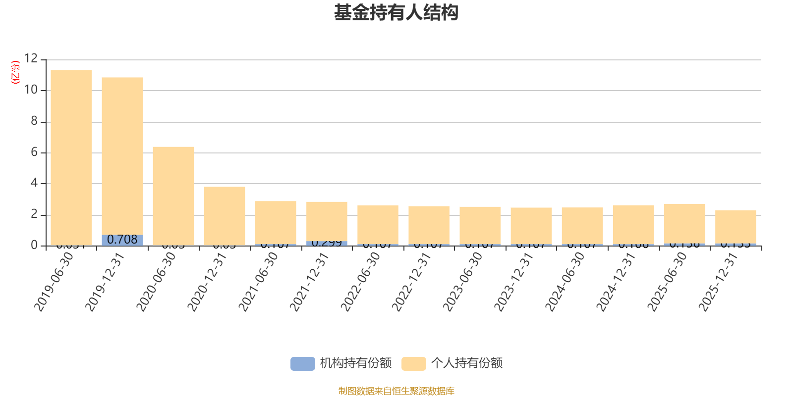 截至2025年12月31日,基金持有人共计8819户,合计持有2.28亿份。其中管理人员工持有69.58万份,占比0.30%,机构持有份额占比6.81%,个人投资者占比93.19%。