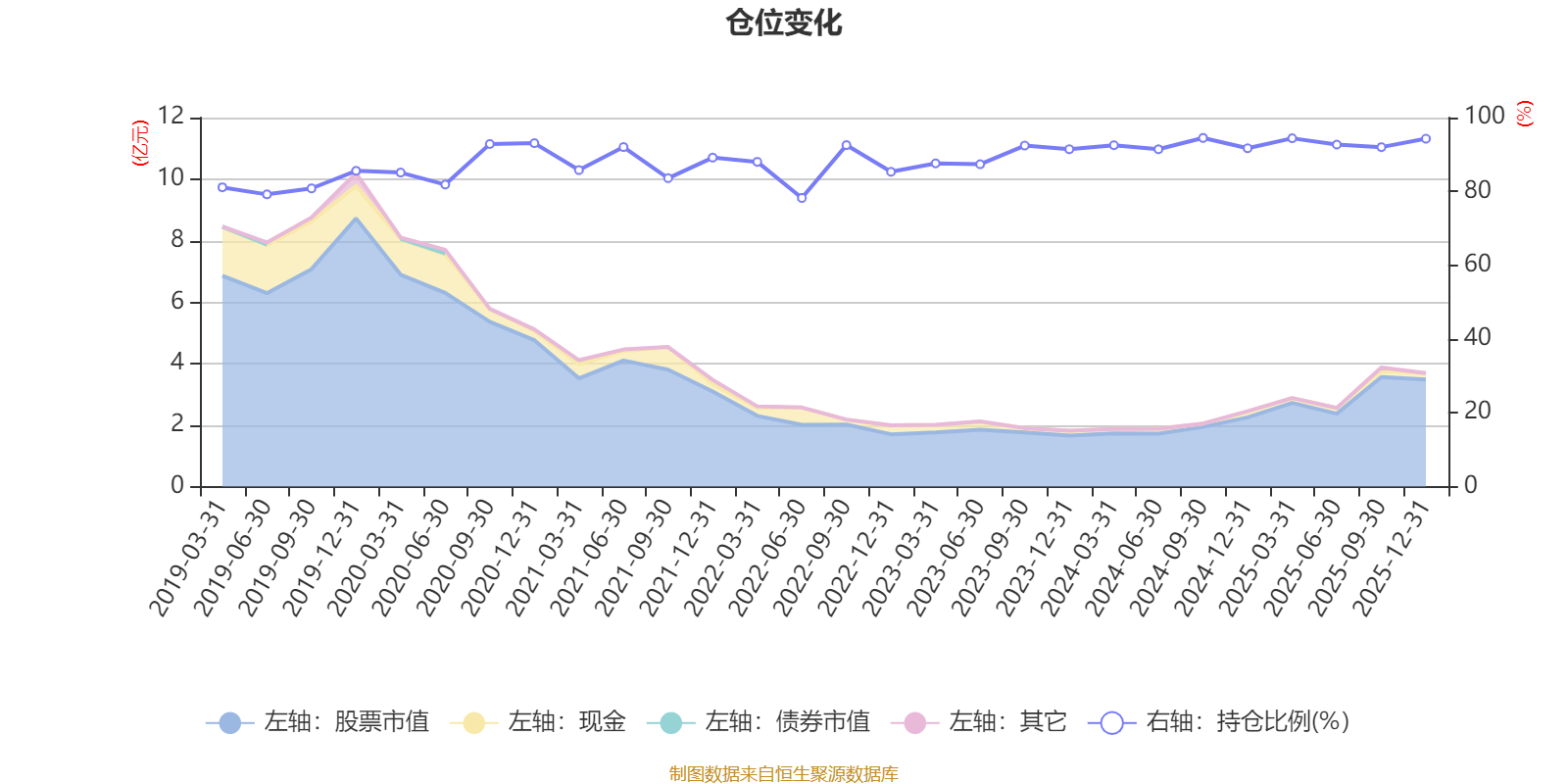 据定期报告数据统计,近三年平均股票仓位为91.86%,同类平均为72.57%。2024年三季度末基金达到94.49%的最高仓位,2022年上半年末最低,为78.22%。