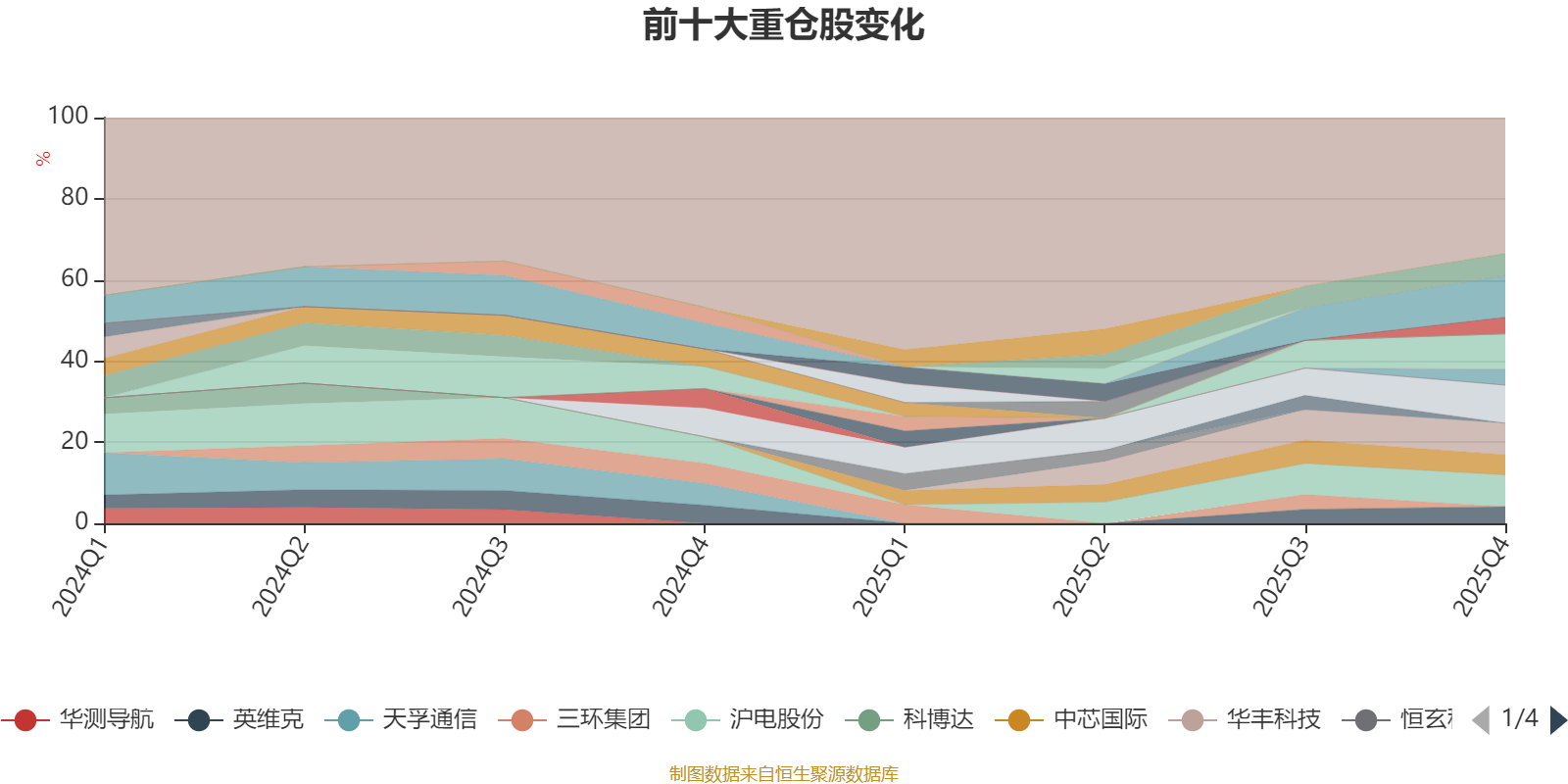 截至2025年末,基金十大重仓股分别是中际旭创、寒武纪、新易盛、华丰科技、沪电股份、胜宏科技、中芯国际、英维克、麦格米特、深南电路。