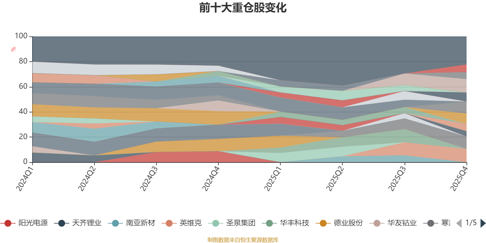 该基金持股集中度较高,近2年前十大重仓股集中度长期超过60%。截至2025年末,基金十大重仓股分别是麦格米特、英维克、寒武纪、天赐材料、中矿资源、新易盛、天际股份、多氟多、中际旭创、盛新锂能。