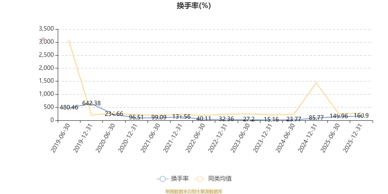 截至2025年12月31日,基金最近一年换手率约301.41%,持续6年低于同类均值。