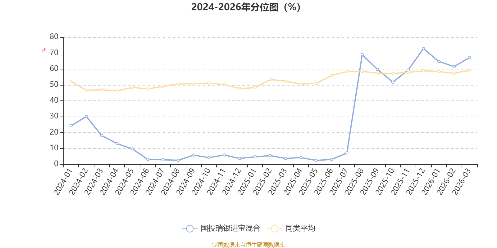 通过所选区间该基金净值增长率分位图,可以观察该基金与同类基金业绩比较情况。图为坐标原点到区间内某时点的净值增长率在同类基金中的分位数。