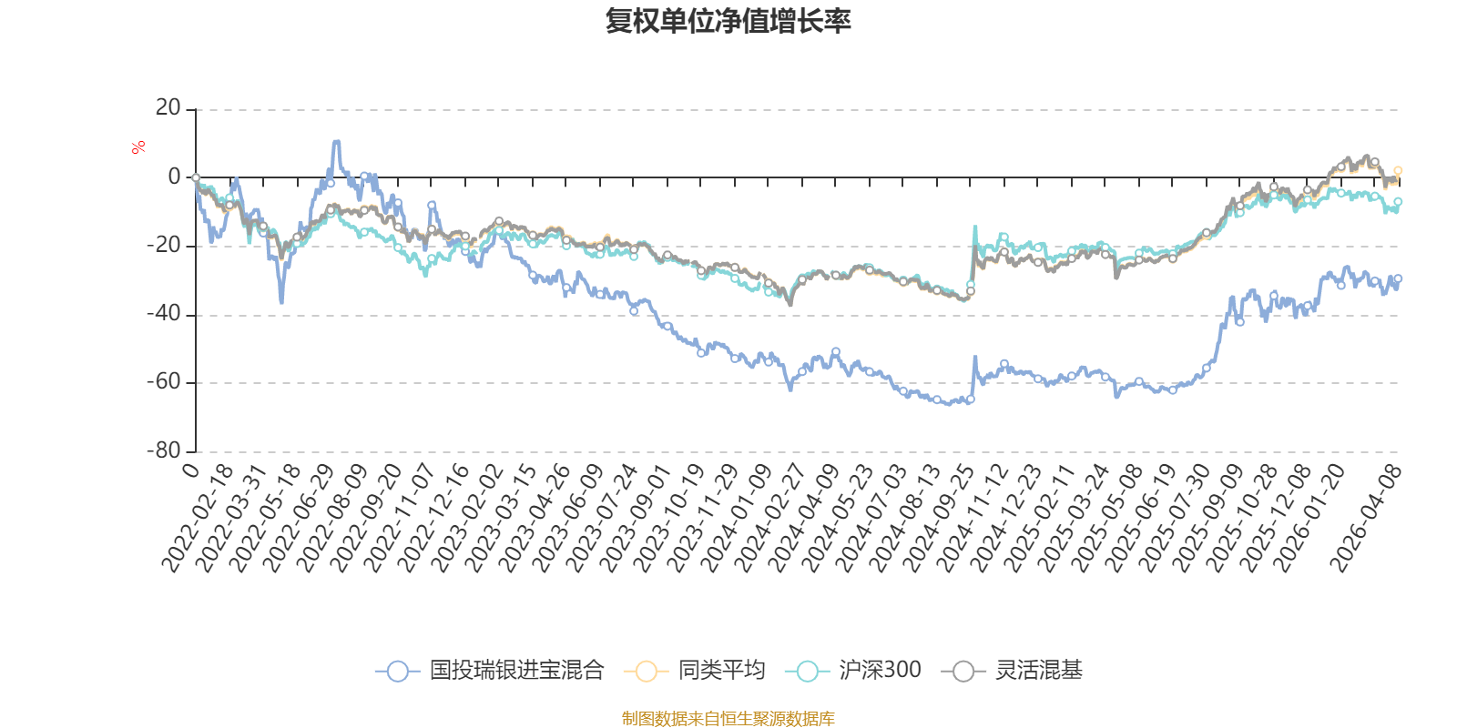 截至4月8日,国投瑞银进宝混合近三个月复权单位净值增长率为-0.49%,位于同类可比基金724/1287;近半年复权单位净值增长率为8.04%,位于同类可比基金346/1286;近一年复权单位净值增长率为97.18%,位于同类可比基金94/1286;近三年复权单位净值增长率为1.80%,位于同类可比基金939/1286。