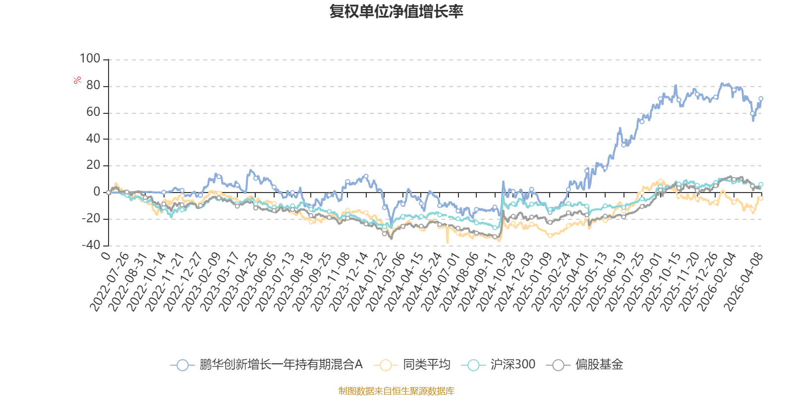 截至4月8日,鹏华创新增长一年持有期混合A近三个月复权单位净值增长率为-4.34%,位于同类可比基金66/106;近半年复权单位净值增长率为-5.38%,位于同类可比基金25/106;近一年复权单位净值增长率为62.91%,位于同类可比基金2/104;近三年复权单位净值增长率为53.58%,位于同类可比基金3/78。