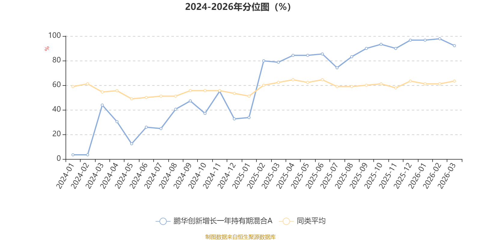 通过所选区间该基金净值增长率分位图,可以观察该基金与同类基金业绩比较情况。图为坐标原点到区间内某时点的净值增长率在同类基金中的分位数。