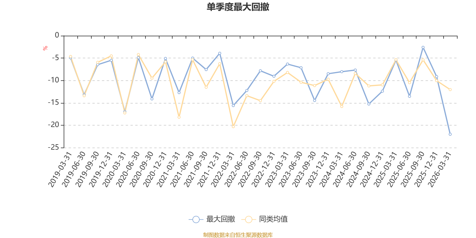 截至4月7日,基金近三年最大回撤为33.04%,同类可比基金排名138/259。单季度最大回撤出现在2026年一季度,为22%。