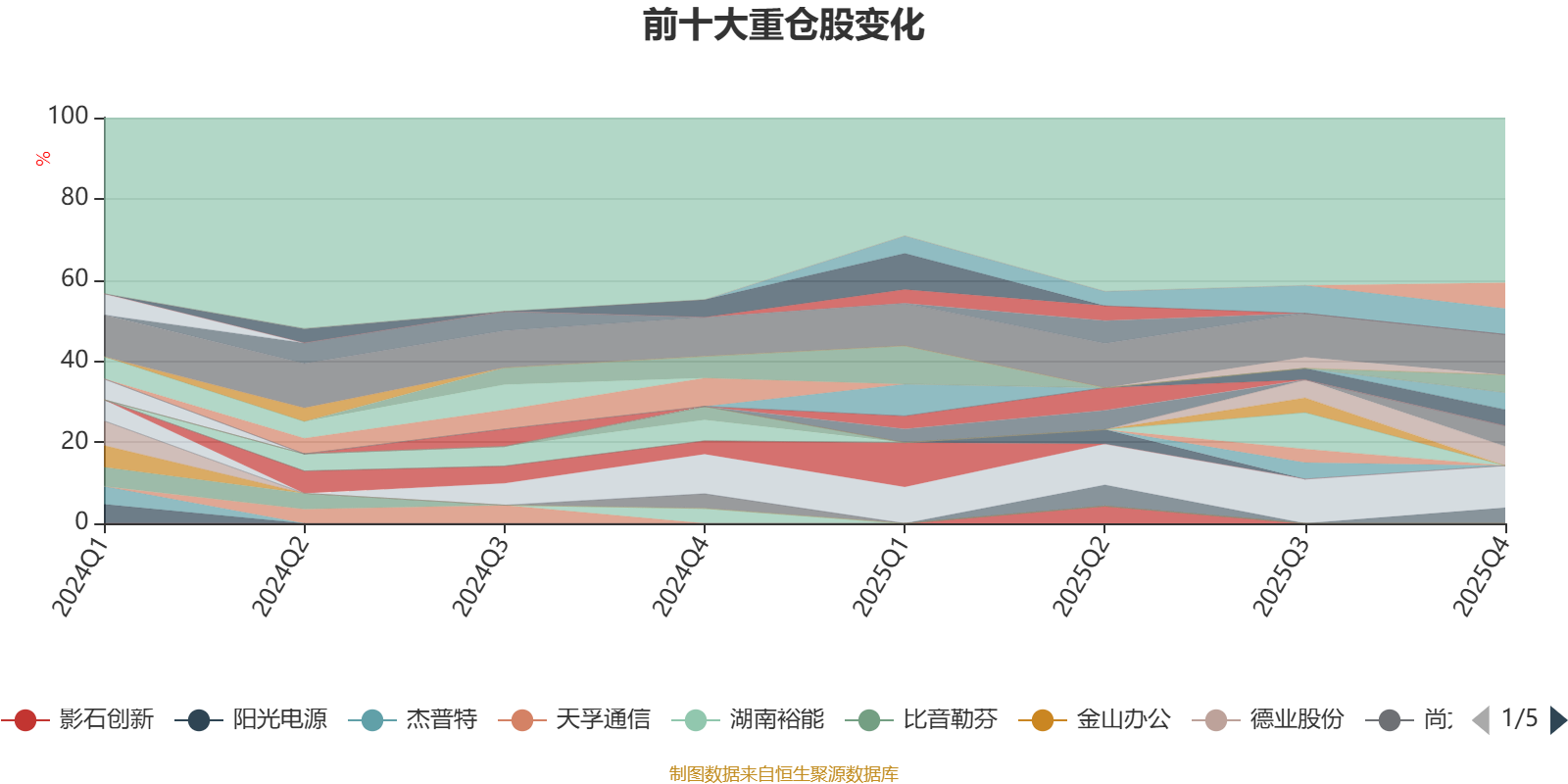 截至2025年末,基金十大重仓股分别是宁德时代、立讯精密、中芯国际、天际股份、天赐材料、歌尔股份、比亚迪、蓝思科技、华东医药、寒武纪。