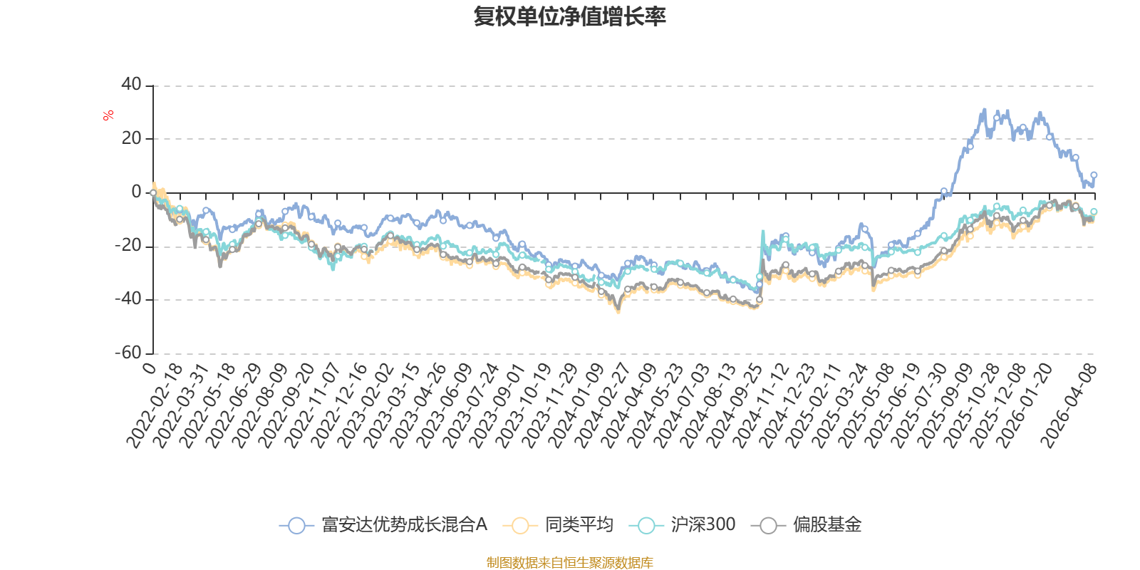 截至4月8日,富安达优势成长混合A近三个月复权单位净值增长率为-15.91%,位于同类可比基金264/265;近半年复权单位净值增长率为-18.49%,位于同类可比基金264/265;近一年复权单位净值增长率为48.07%,位于同类可比基金105/265;近三年复权单位净值增长率为16.45%,位于同类可比基金135/261。