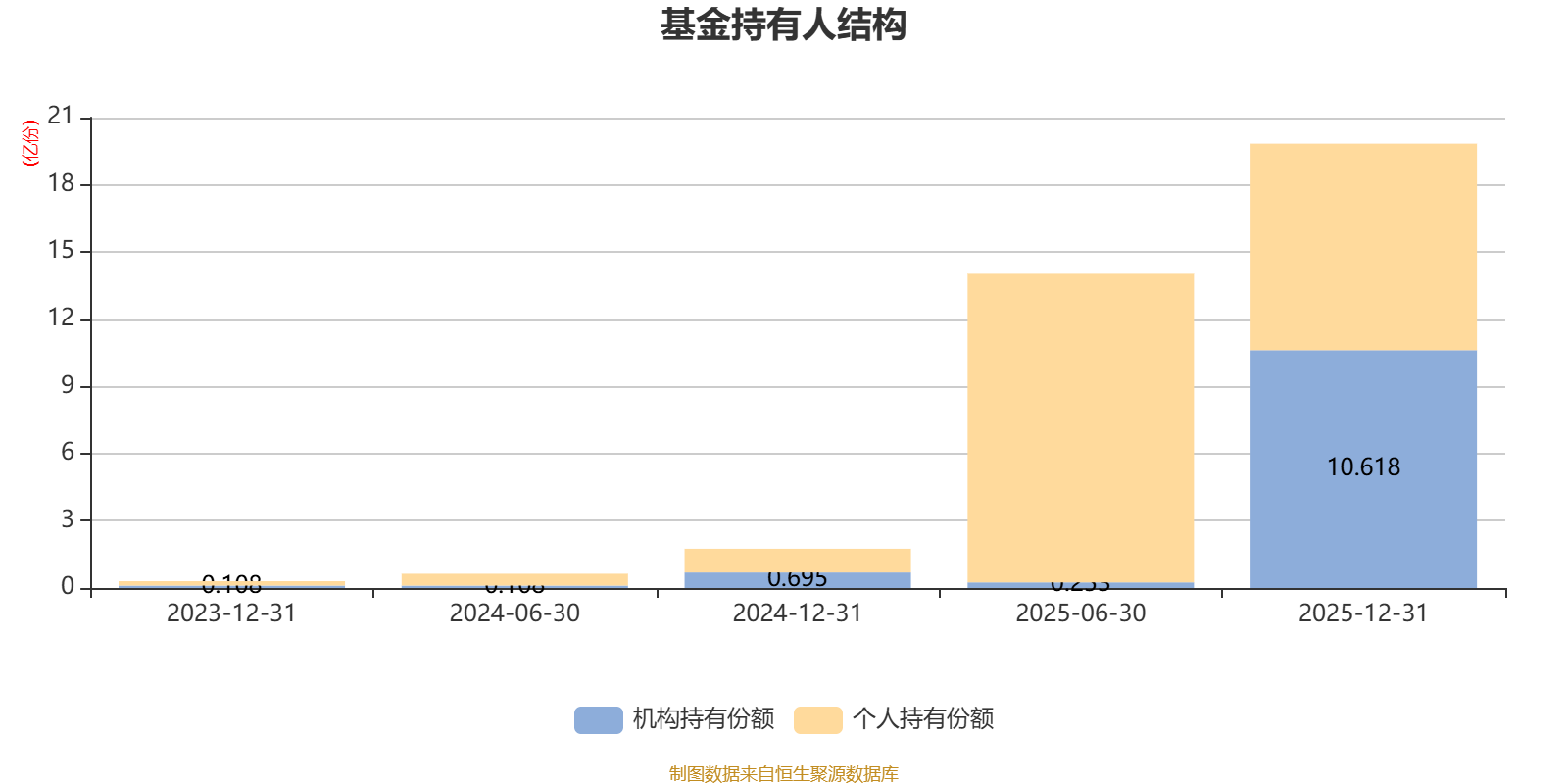 截至2025年12月31日,基金持有人共计9.37万户,合计持有19.83亿份。其中管理人员工持有165.54万份,占比0.08%,机构持有份额占比53.53%,个人投资者占比46.47%。