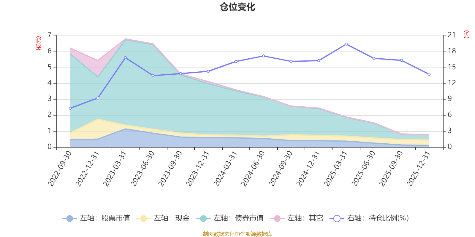 据定期报告数据统计,近三年平均股票仓位为15.85%,同类平均为19.2%。2025年一季度末基金达到19.39%的最高仓位,2022年三季度末最低,为7.31%。