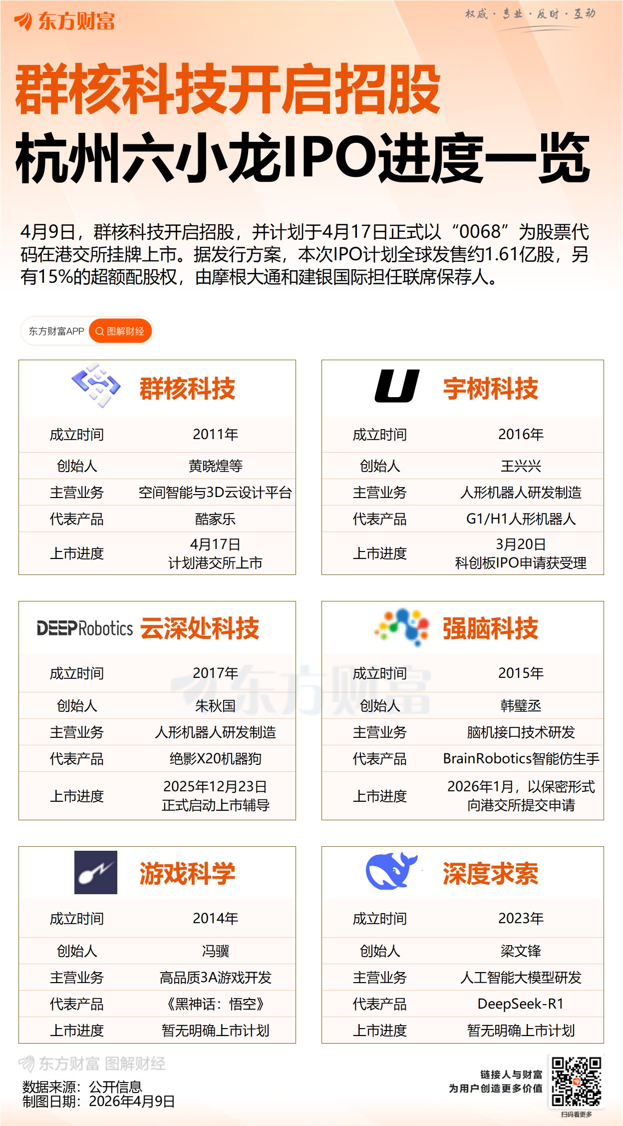 群核科技与深度求索(DeepSeek)、宇树科技、游戏科学、云深处科技、强脑科技并称为“杭州六小龙”。此前,上交所已受理了宇树科技的科创板IPO申请,云深处科技正处于上市辅导阶段。而强脑科技则有报道称以保密形式提交港股IPO申请。