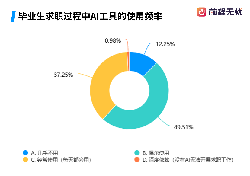 这种分化也体现在心理层面。当使用AI优化简历并获得面试机会时,35%的受访毕业生产生焦虑,担心“面试表现无法匹配简历水平”;32%的人则感到“掌握先进工具的成就感”;还有近四分之一受访毕业生表现出“坦然接受”,认为这是行业常态。