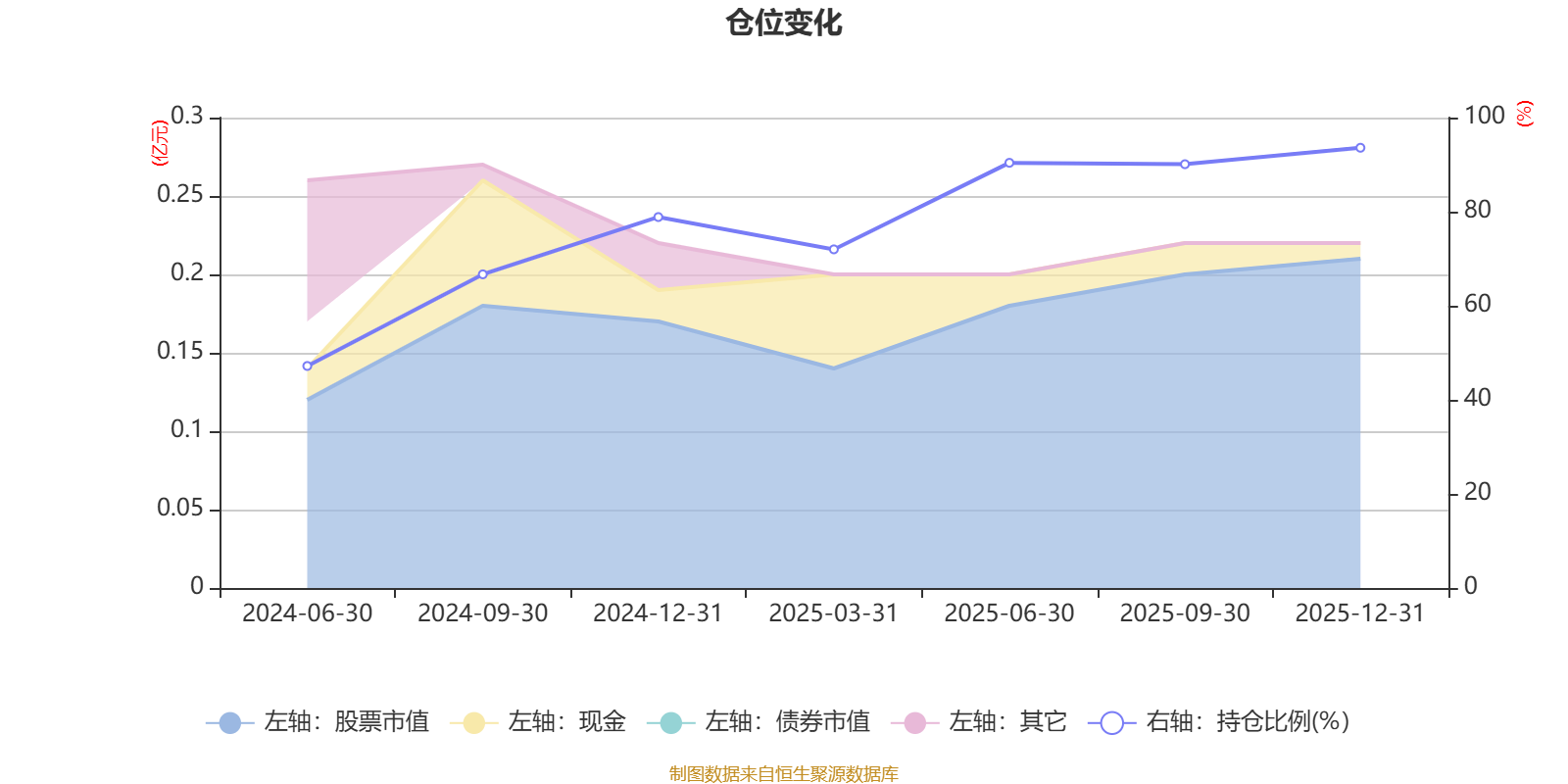 据定期报告数据统计,成立以来平均股票仓位为76.97%,同类平均为84.04%。2025年末基金达到93.59%的最高仓位,2024年上半年末最低,为47.2%。