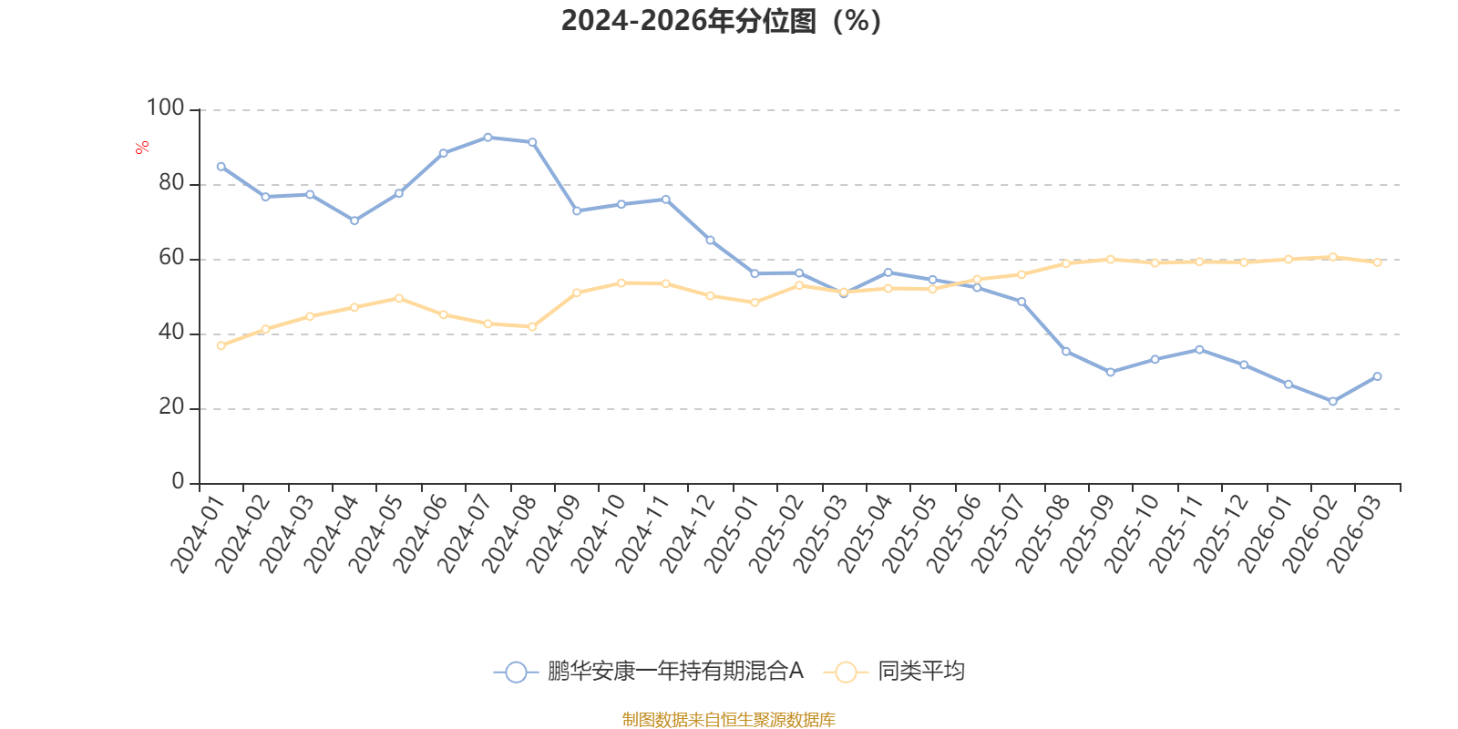 通过所选区间该基金净值增长率分位图,可以观察该基金与同类基金业绩比较情况。图为坐标原点到区间内某时点的净值增长率在同类基金中的分位数。