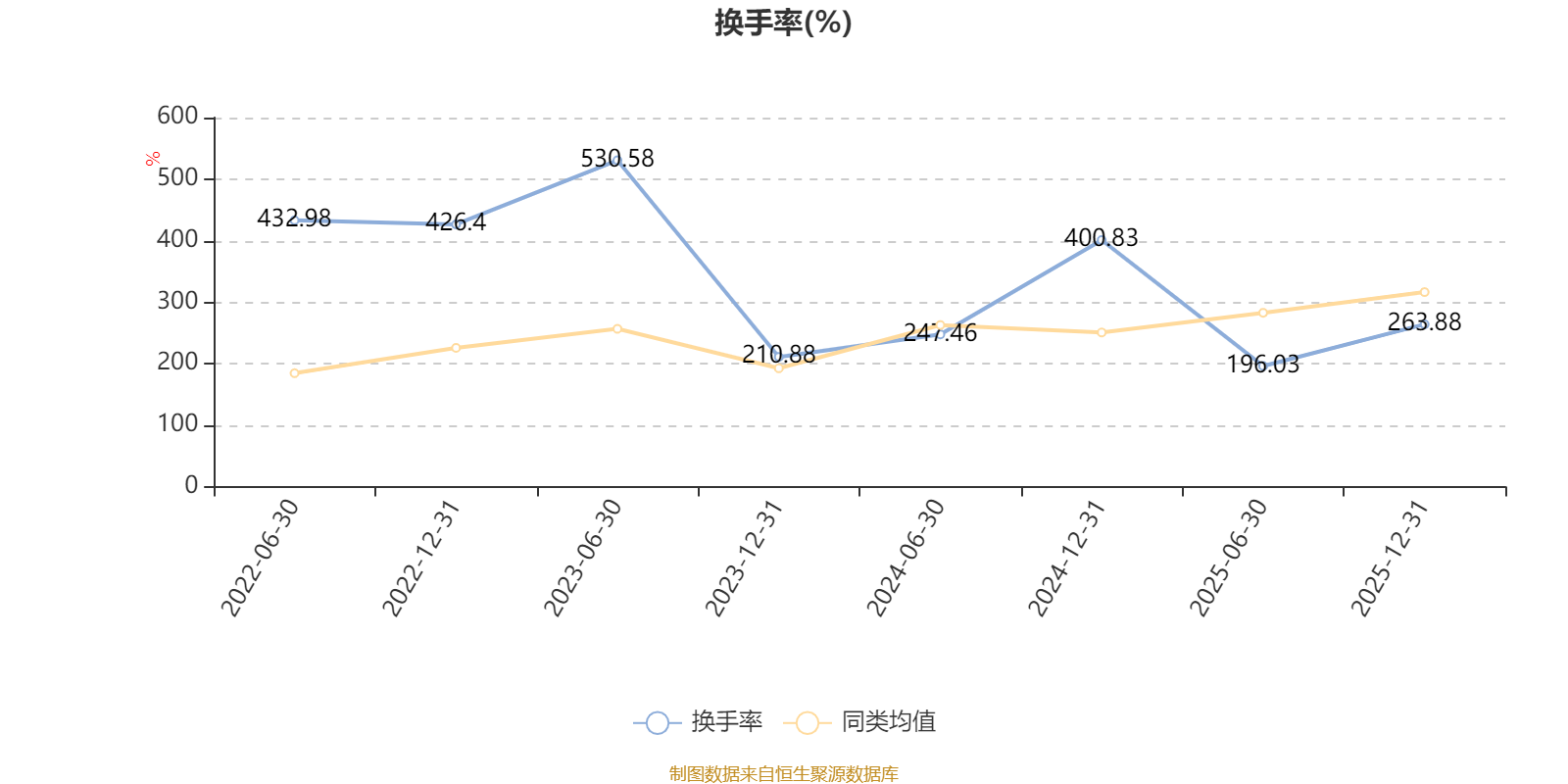截至2025年12月31日,基金最近一年换手率约448.96%,持续1年低于同类均值。
