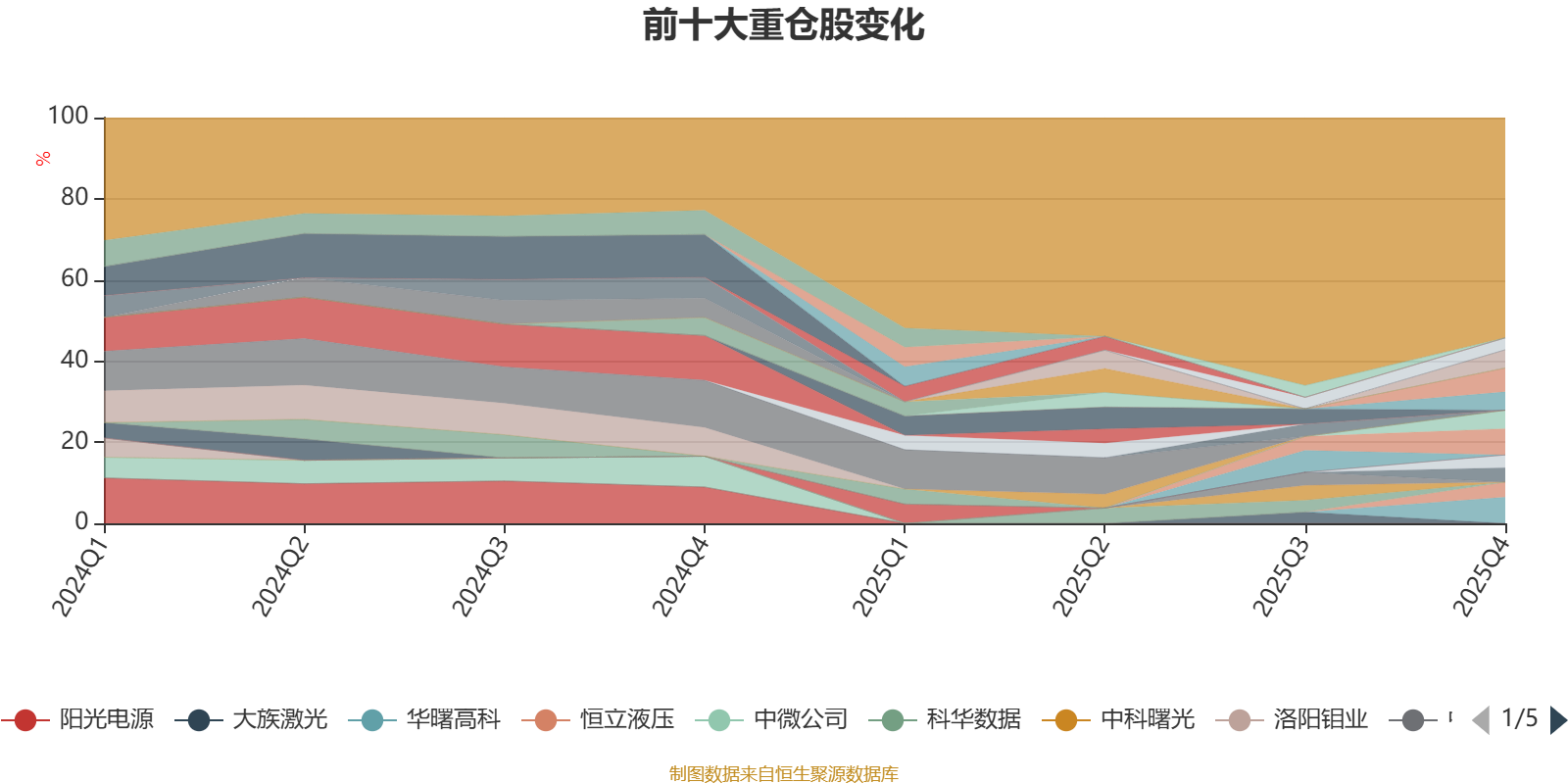 截至2025年末,基金十大重仓股分别是中石科技、华曙高科、英科医疗、寒武纪、中孚实业、广东宏大、恒立液压、德福科技、长川科技、牧原股份。